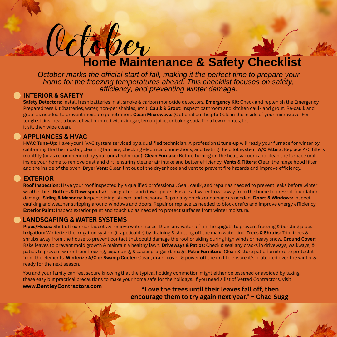 MONTHLY HOME MAINTENANCE CHECKLIST